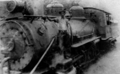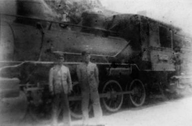 Funcionário da ferrovia junto a locomotiva que subia a Serra dos Órgãos com destino a Teresópolis